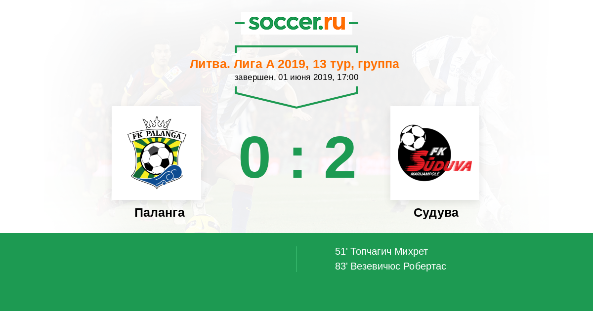 83' (0:2) Везевичюс Робертас (32)