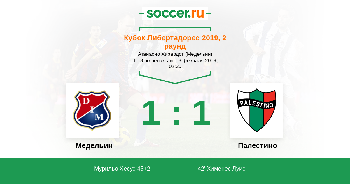 Гол45+2' (1:1) Мурильо Хесус (3) (Рикарт (10))