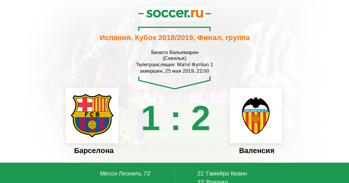 33' (0:2) Родриго (19) (Солер Карлос (8))