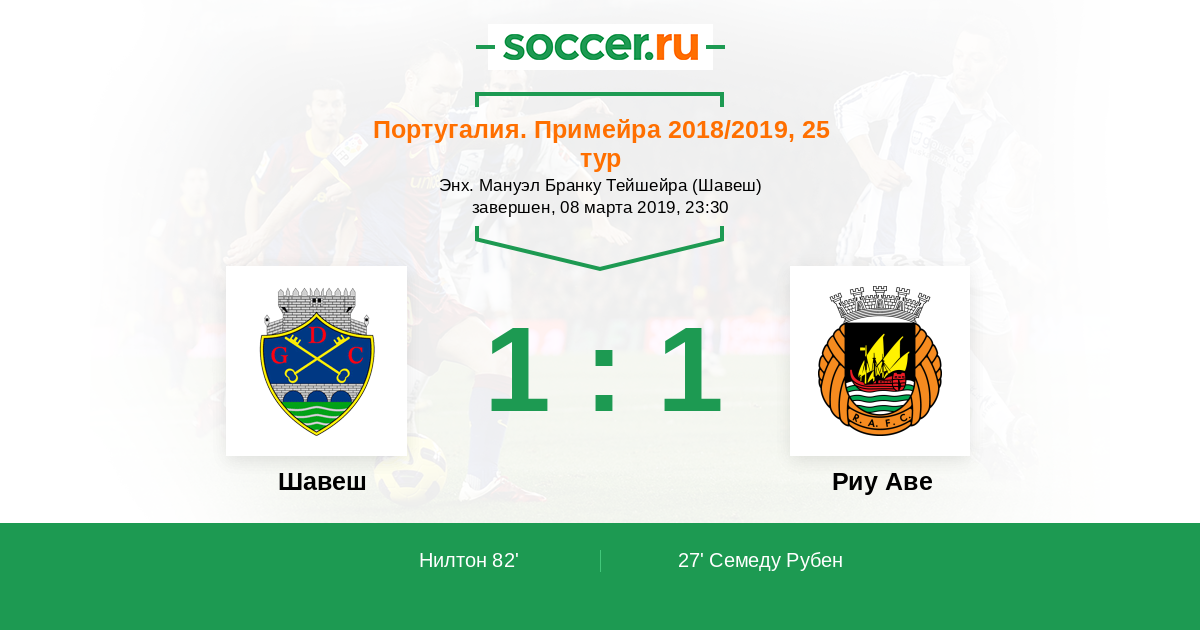 82' (1:1) Нилтон (30) (Луис Андре (14))