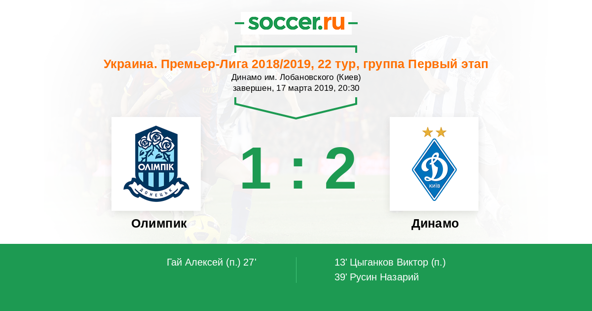 39' (1:2) Русин Назарий (43) (Цыганков Виктор (15))