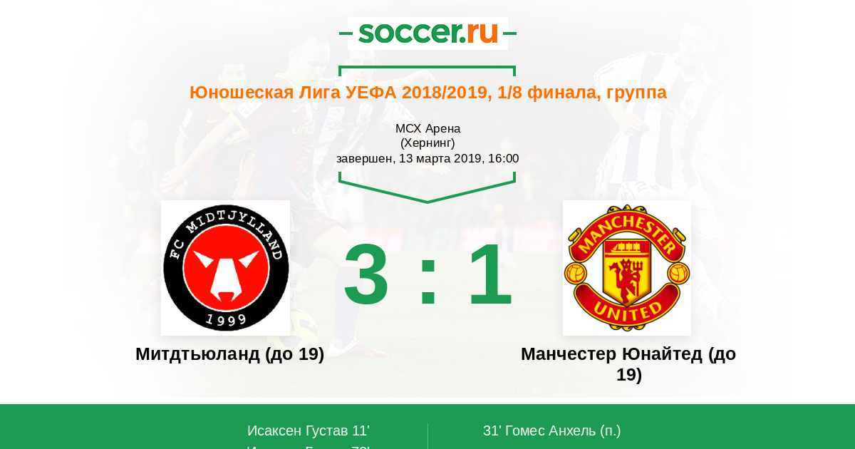 Митдтьюланд (до 19) - Манчестер Юнайтед (до 19)