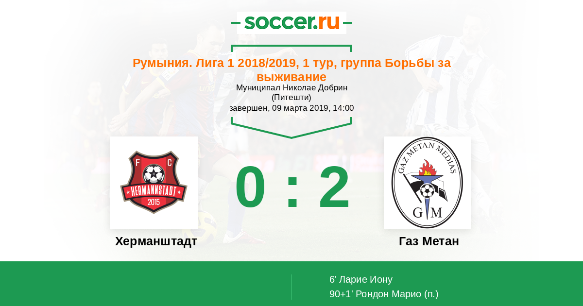 6' (0:1) Ларие Иону (25) (Шамед Нассер (70))