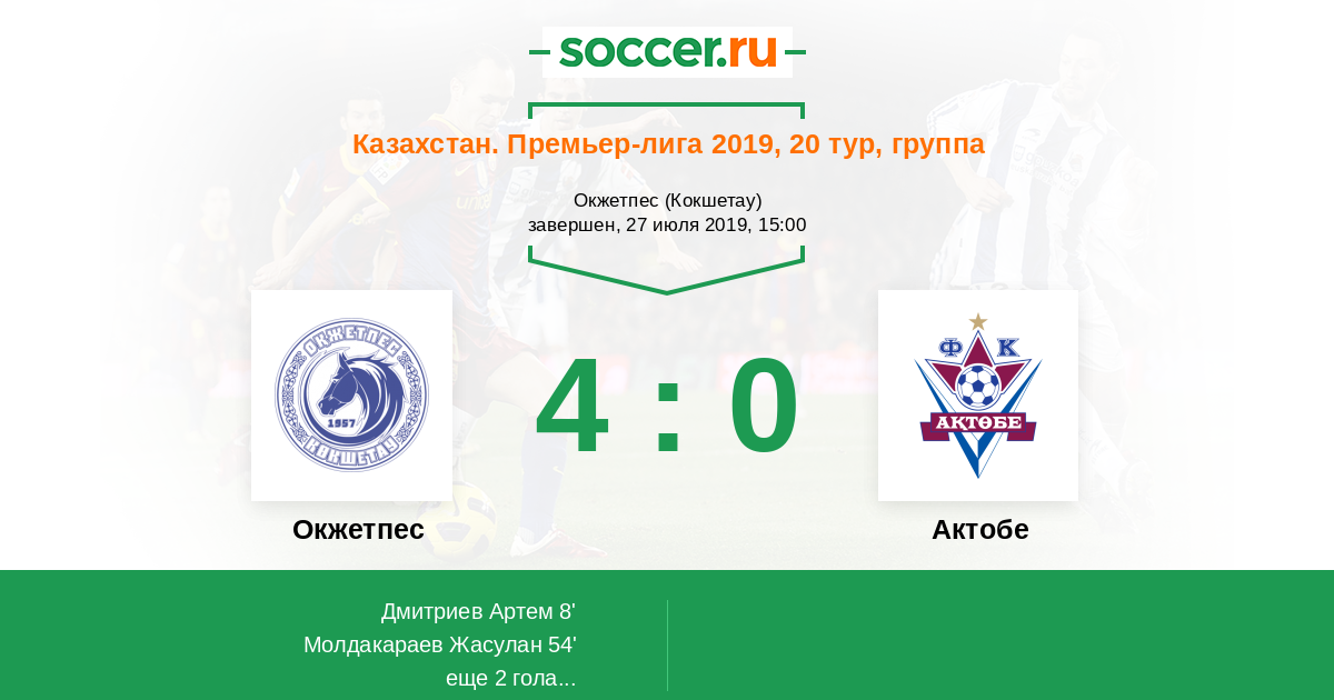 54' (2:0) Молдакараев Жасулан (D. Zoric)