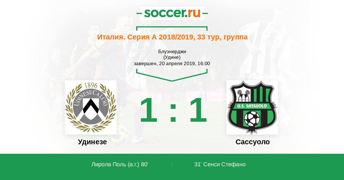 Удинезе - Сассуоло