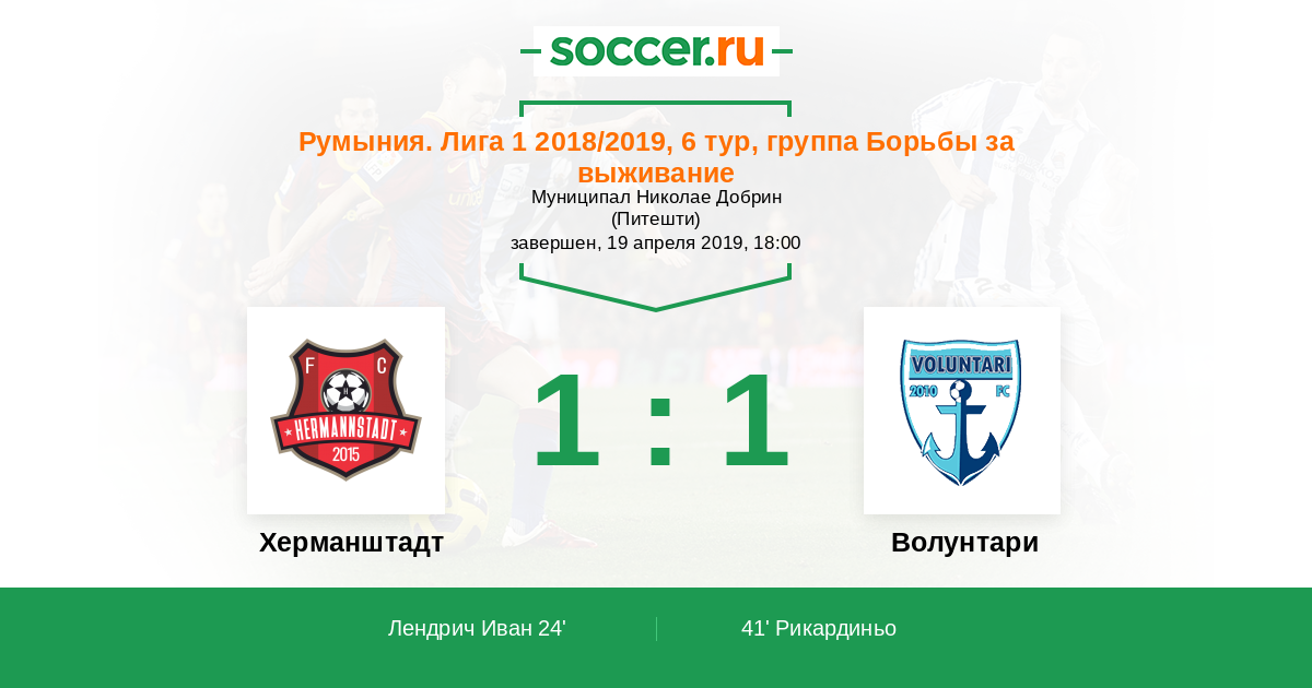 41' (1:1) Рикардиньо (22) (Георге Ион (6))