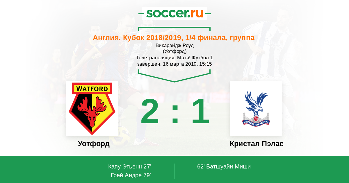 27' (1:0) Капу Этьенн (29) (Кэткарт Крэйг (15))