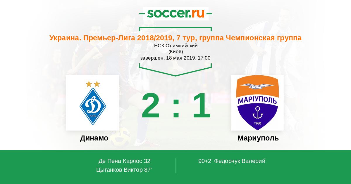 32' (1:0) Де Пена Карлос (14) (Цыганков Виктор (15))