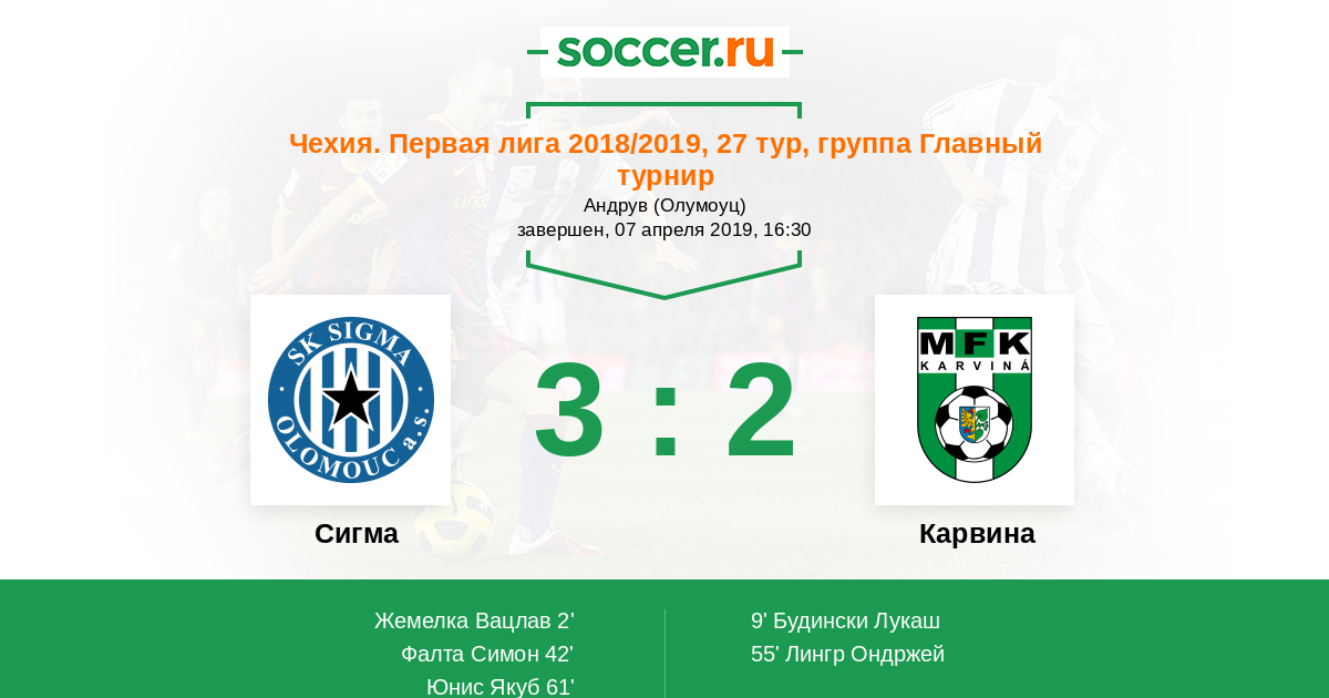 55' (2:2) Лингр Ондржей (10)