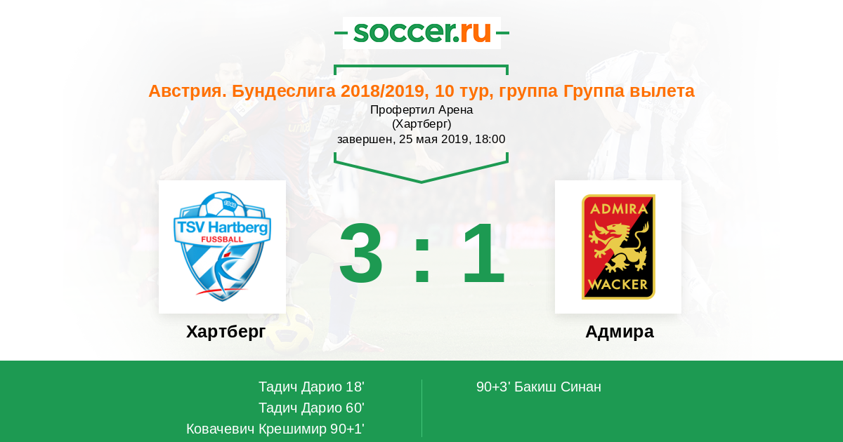 90+1' (3:0) Ковачевич Крешимир (25) (Блауенштейнер Михаэль (19))
