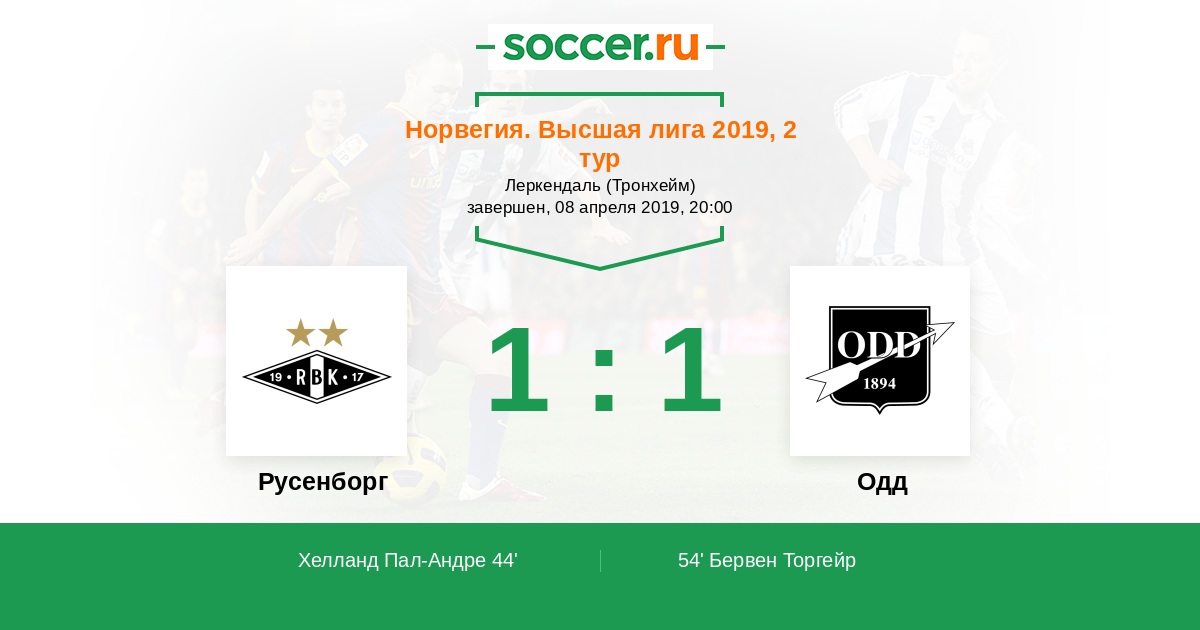 54' (1:1) Бервен Торгейр (22) (Рууд Эспен (2))