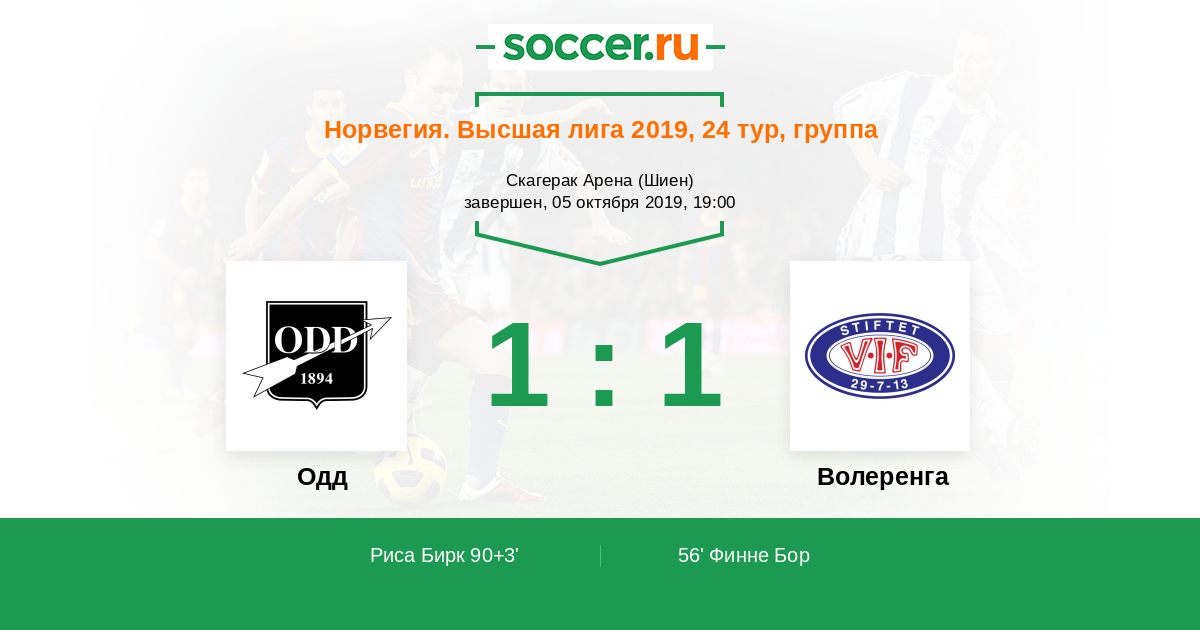 56' (0:1) Финне Бор (11) (Вильяльмссон Маттиас (10))