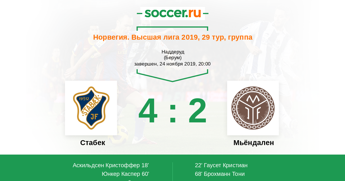 22' (1:1) Гаусет Кристиан (11) (Сольберг Йоахим (6))