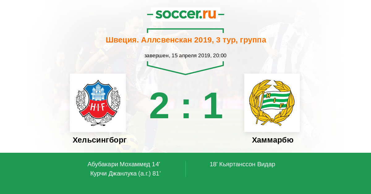 18' (1:1) Кьяртанссон Видар (17) (Видгрен Деннис (3))