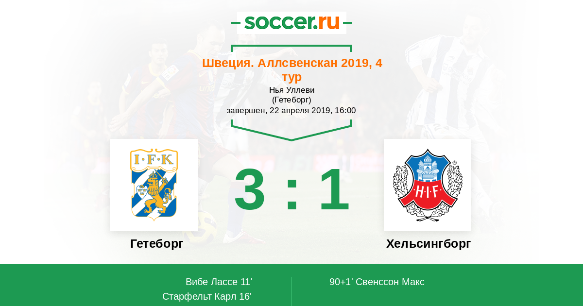 11' (1:0) Вибе Лассе (29) (Олссон Себастьян (24))