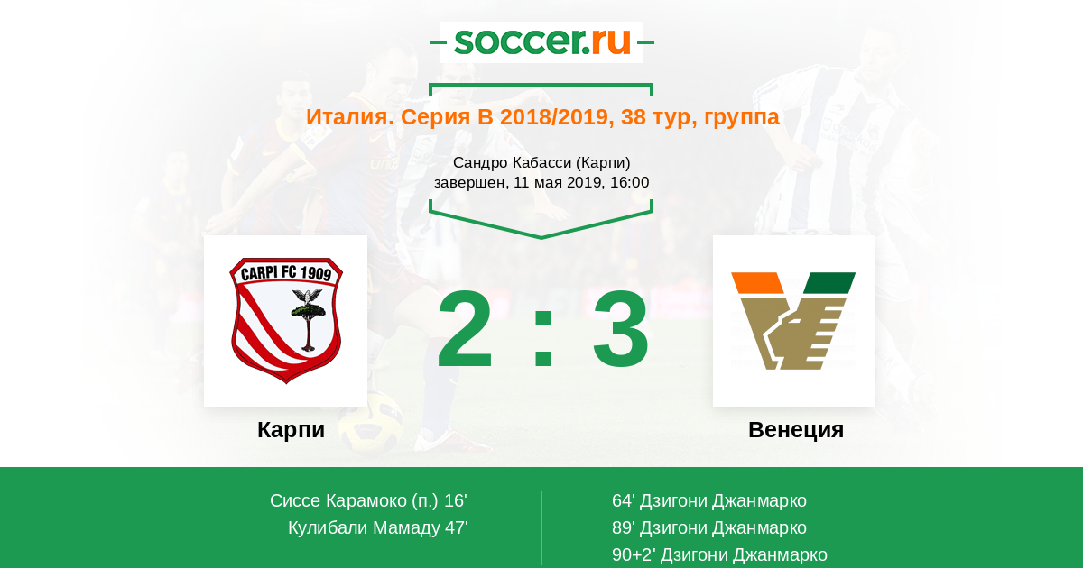 89' (2:2) Дзигони Джанмарко (9) (Модоло Марко (13))