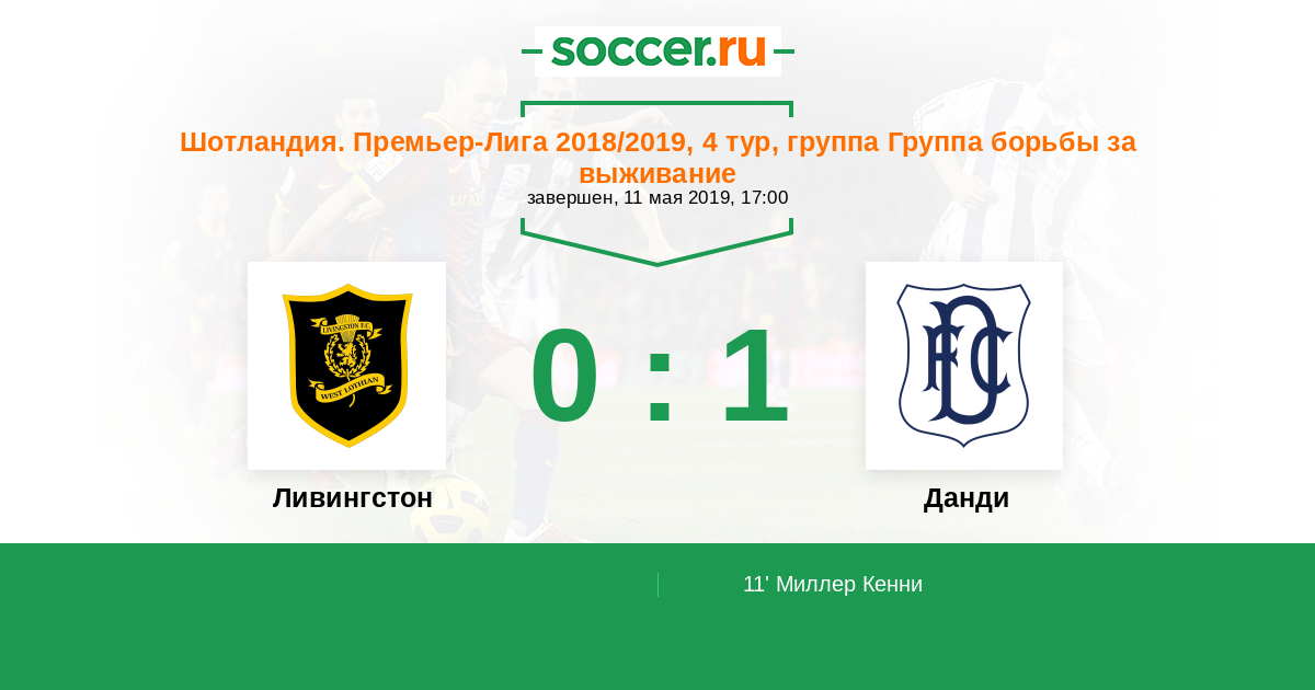 11' (0:1) Миллер Кенни (20) (Нельсон Эндрю (21))