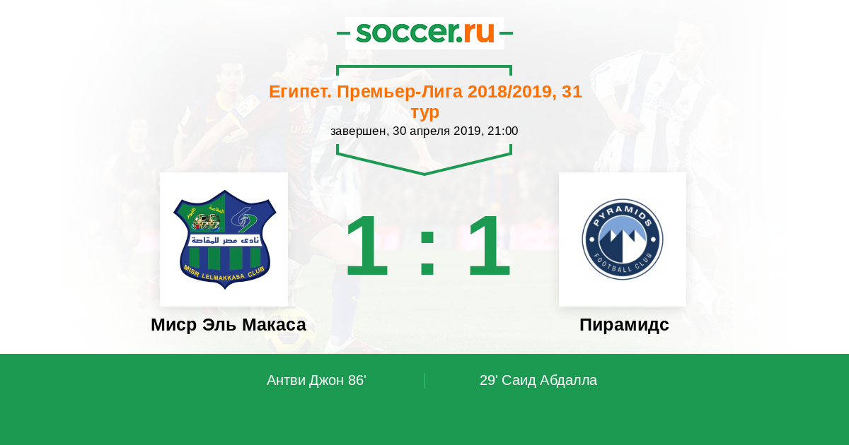 Запасные: Эль Манси Насер (с 68'), Моханад Мостафа Лашин (с 78')