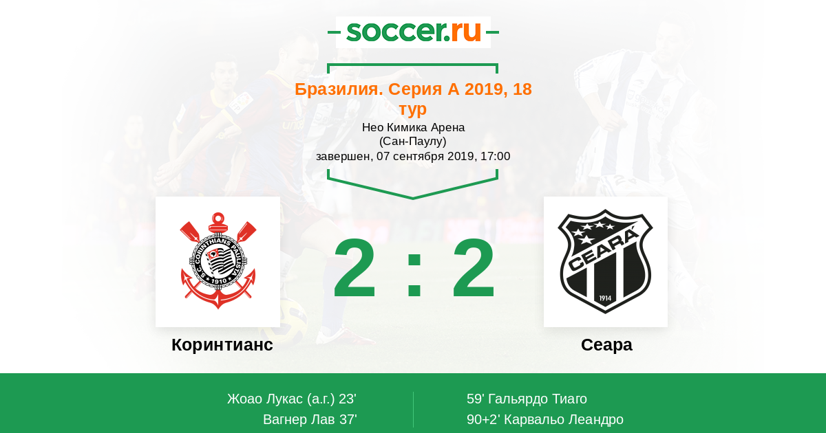 Запасные: 82 Карвальо Леандро (с 63'), 55 Виллиан Оливейра (с 69'), 10 Фелипе де Оливейра (с 85'), 7 Матеус, 77 Силвейра да Силва Бергсон Густаво, 46 Карлето Тиаго, 4 Брок Эдуардо, 1 Оливейра-де-Франса Лукас, 88 Кен Педро