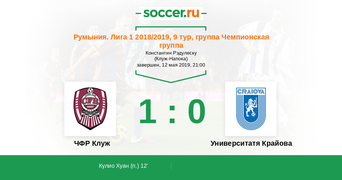12' (1:0) Кулио Хуан (19)