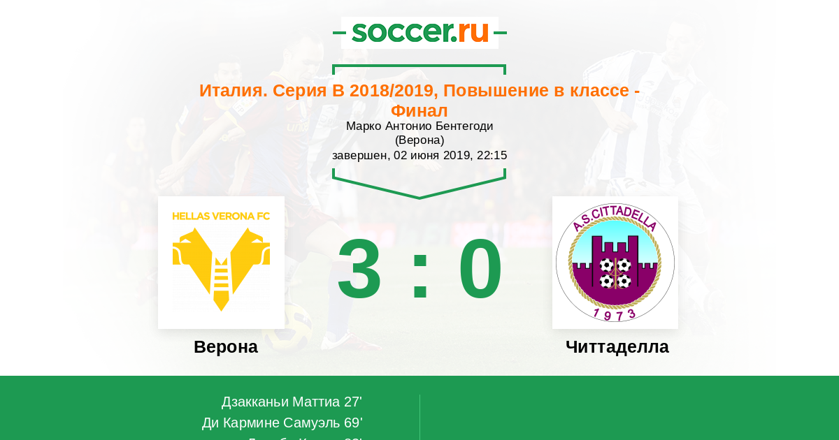 27' (1:0) Дзакканьи Маттиа (20) (Фараони Давиде (5))