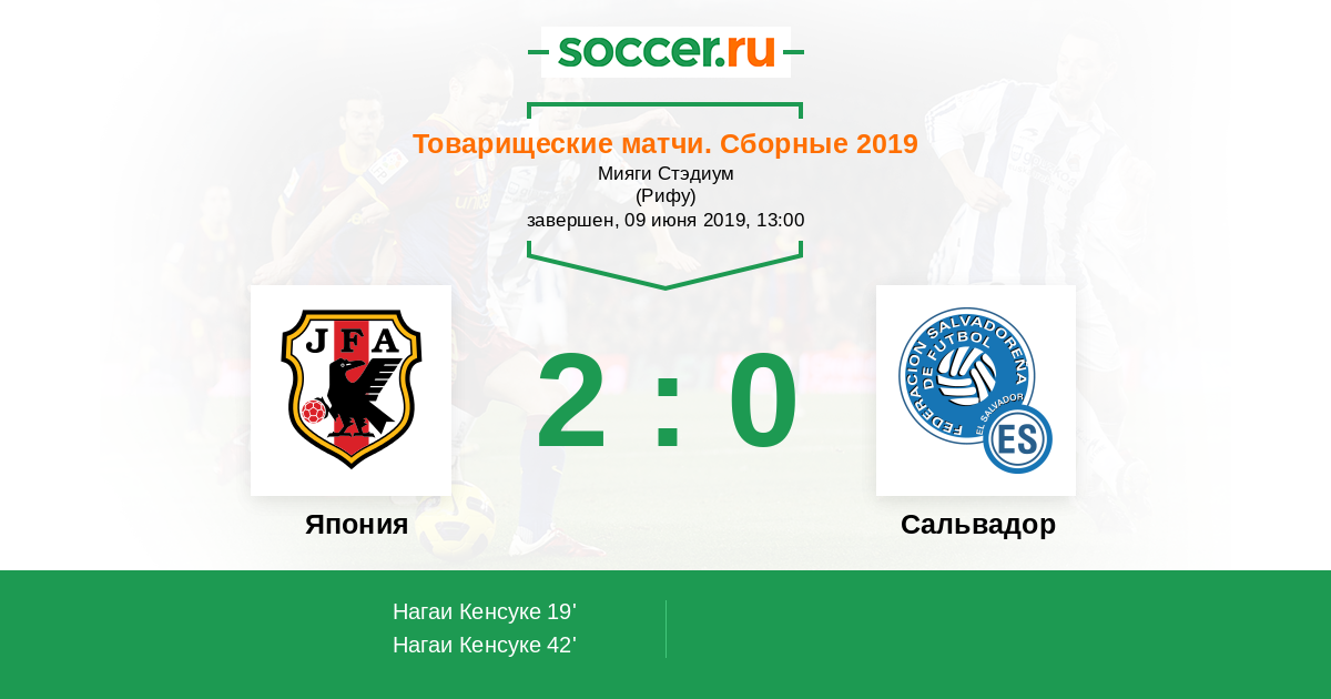 Запасные: 15 Осако Юя (с 59'), 4 Яманака Рйосуке (с 59'), 2 Муроя Сеи (с 59'), 11 Накадзима Соя (с 67'), 27 Кубо Такефуса (с 67'), 7 Сибасаки Гаку (с 80'), 12 Гонда Суичи, 24 Морита Хидемаса, 5 Нагатомо Юто, 19 Сакаи Хироки, 26 Накаяма Юта, 28 Кейсуке Осако