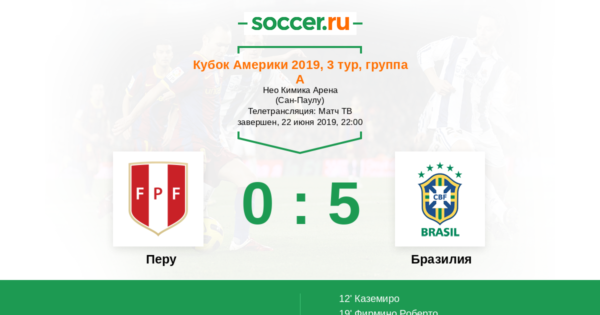 12' (0:1) Каземиро (5) (Маркиньос (4))