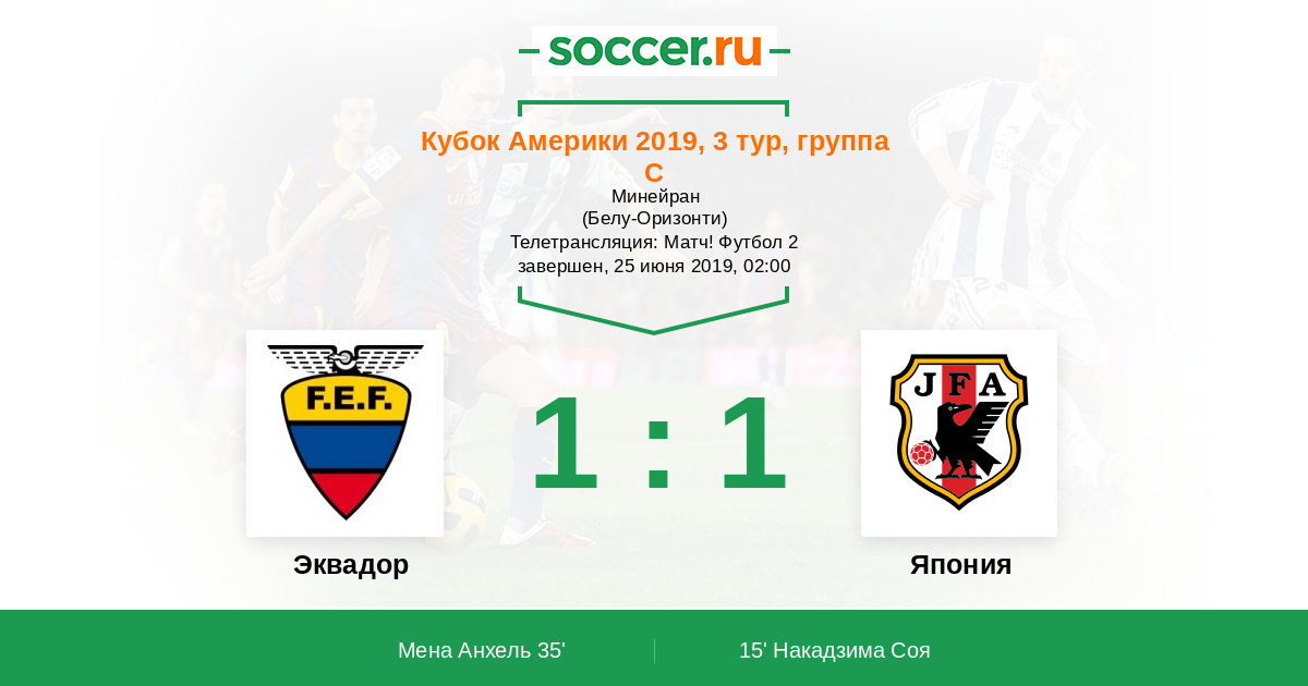 Запасные: 12 Ортис Педро, 1 Бангуэра Максимо, 14 Арреага Хавьер, 20 Чикайза Луис (с 74'), 15 Интриаго Джефферсон, 19 Кайседо Бедер, 17 Кинтерос Хосе, 16 Валенсия Луис-Антонио (с 83'), 11 Пресиадо Айртон, 9 Гарсес Карлос