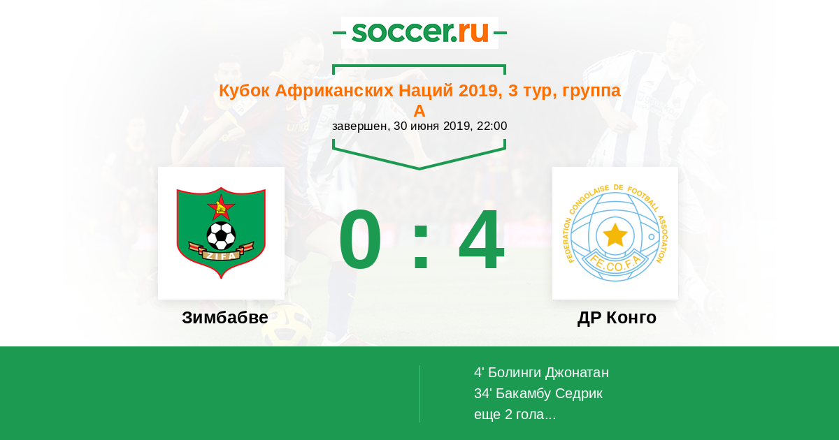 34' (0:2) Бакамбу Седрик (17) (Мпеко Иссама (2))
