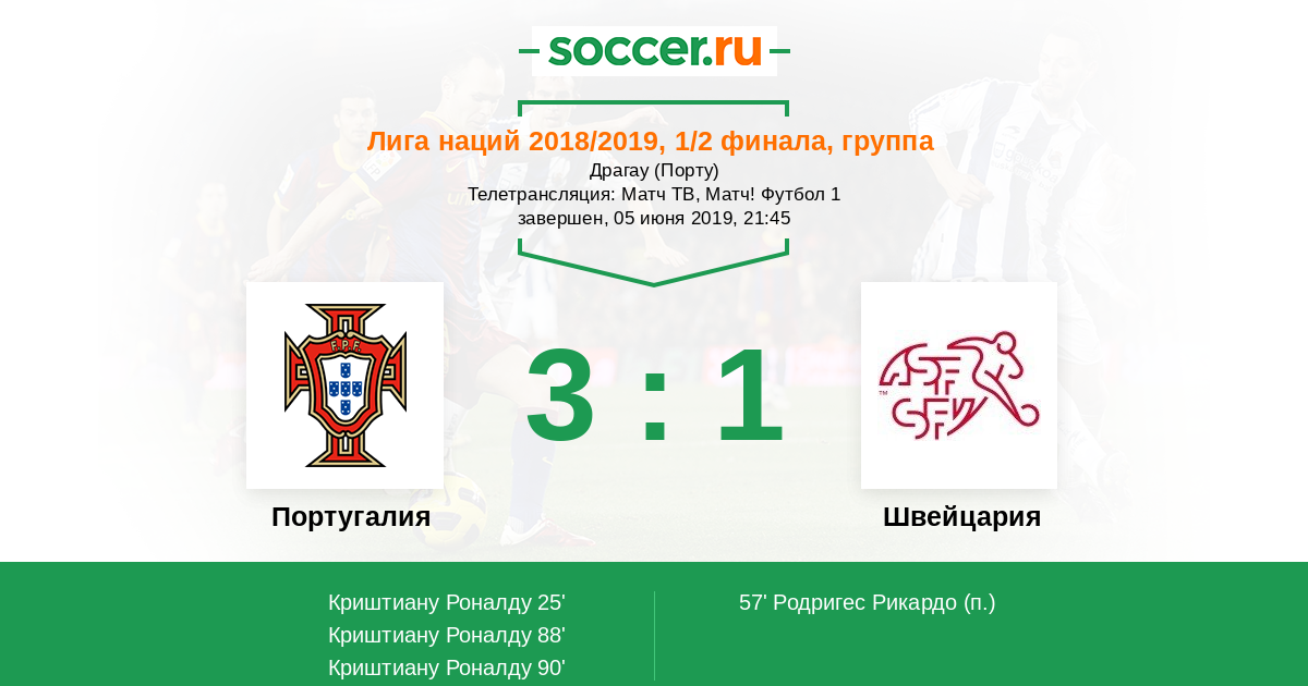 88' (2:1) Криштиану Роналду (7) (Силва Бернарду (10))