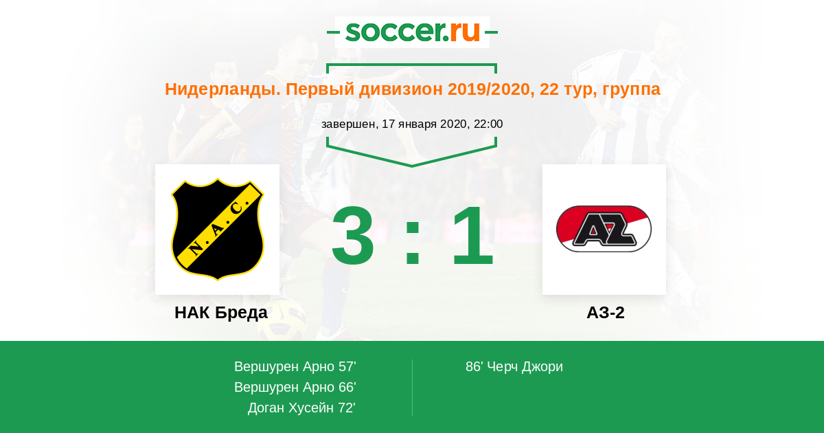72' (3:0) Доган Хусейн (10) (Шутен Робин (2))