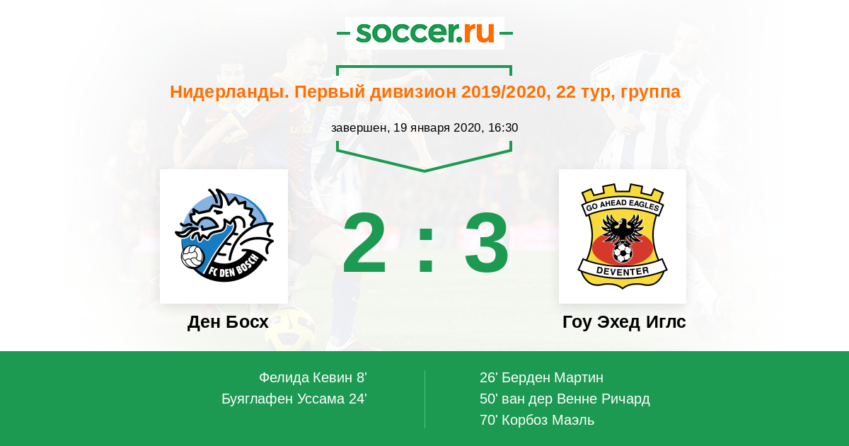 8' (1:0) Фелида Кевин (16) (Вербек Дэнни (11))