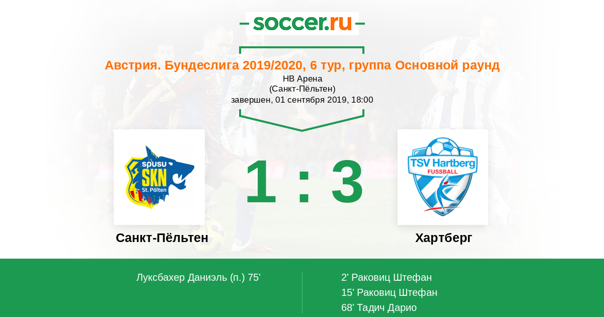 2' (0:1) Раковиц Штефан (10) (Клем Кристиан (14))