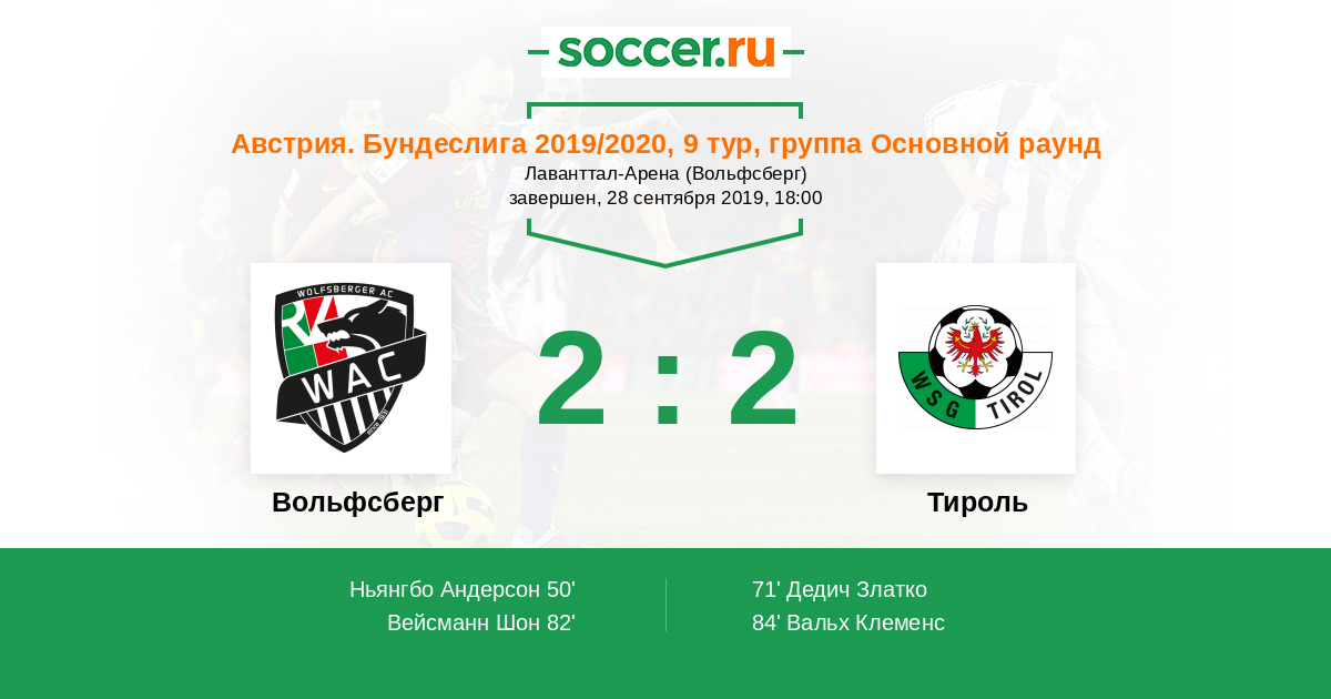 84' (2:2) Вальх Клеменс (18)
