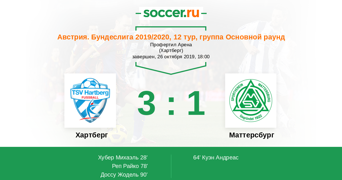 28' (1:0) Хубер Михаэль (4) (Тадич Дарио (24))