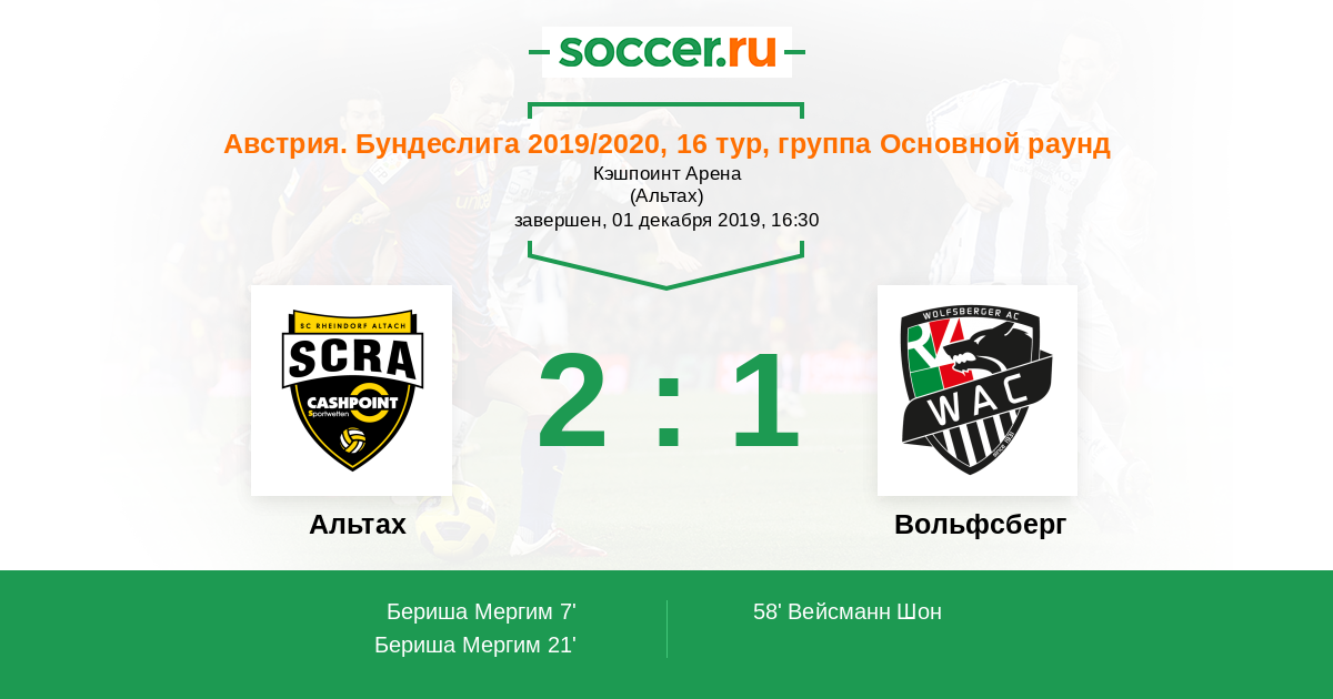 7' (1:0) Бериша Мергим (37) (Тартаротти Йоханнес (20))
