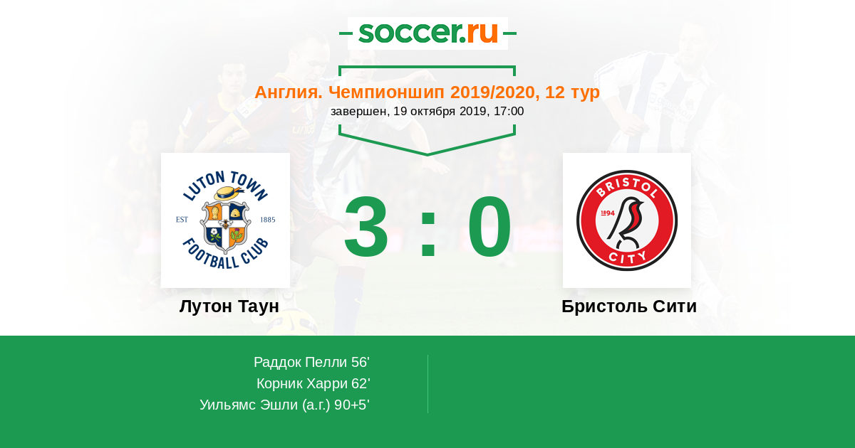56' (1:0) Раддок Пелли (17) (Коллинз Джеймс (19))