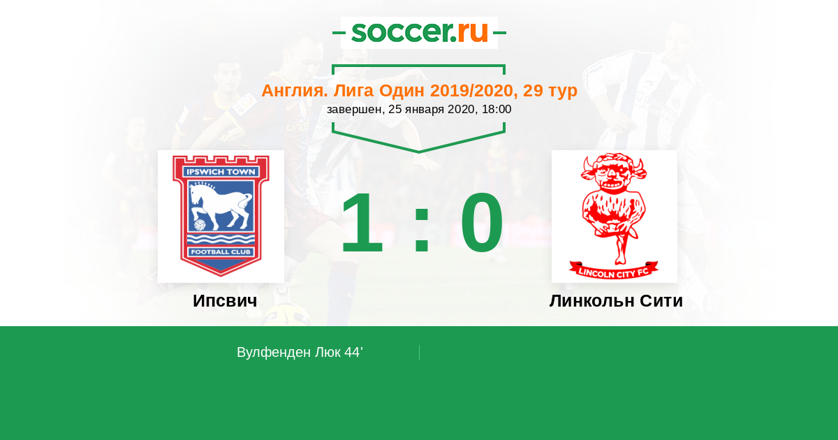 44' (1:0) Вулфенден Люк (28) (Гарбатт Люк (29))