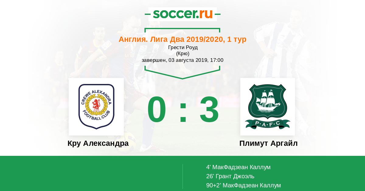 4' (0:1) МакФадзеан Каллум (21) (Грант Джоэль (16))