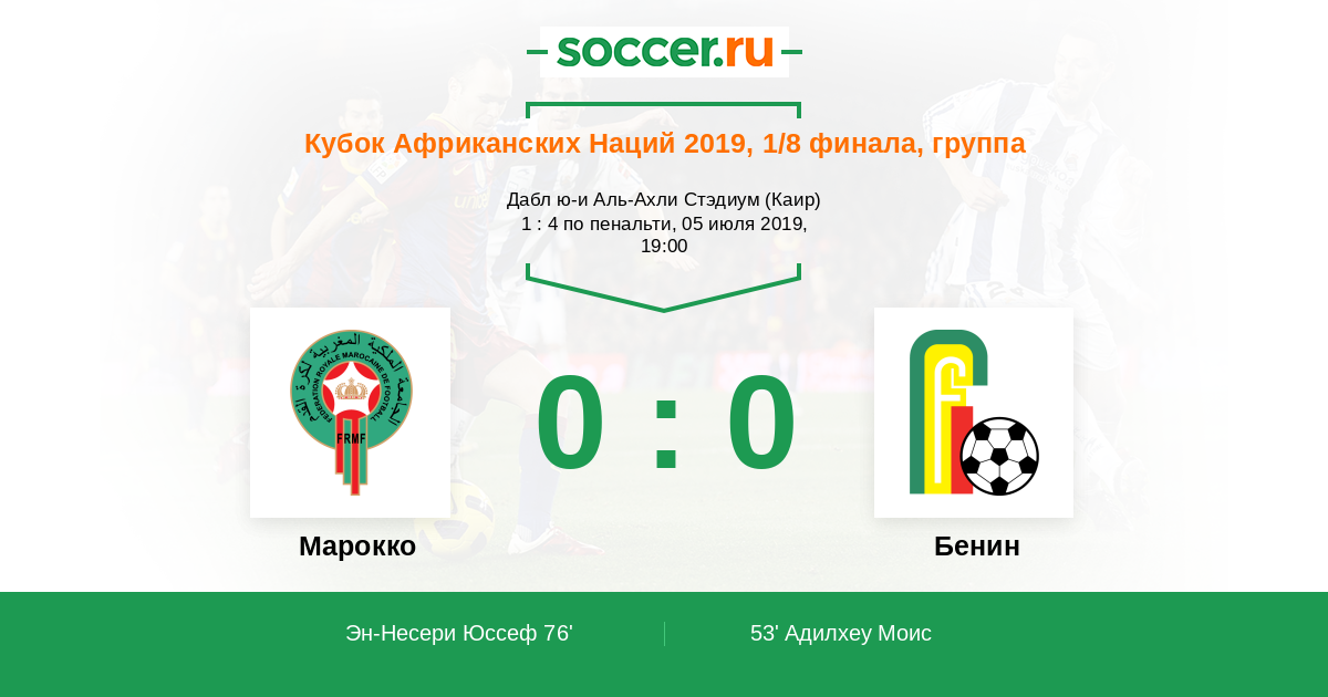 76' (1:1) Эн-Несери Юссеф (19) (Буссуфа Мбарк (14))