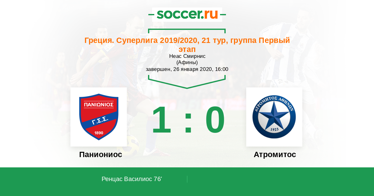 Запасные: 35 Мандас Христос, 3 Катранис Александрос (с 46'), 14 Андруцос Танасис (с 58'), 18 Баэна Рауль, 15 Мадсон, 20 Якумакис Петрос (с 73'), 27 Нтавиотис Гиоргос