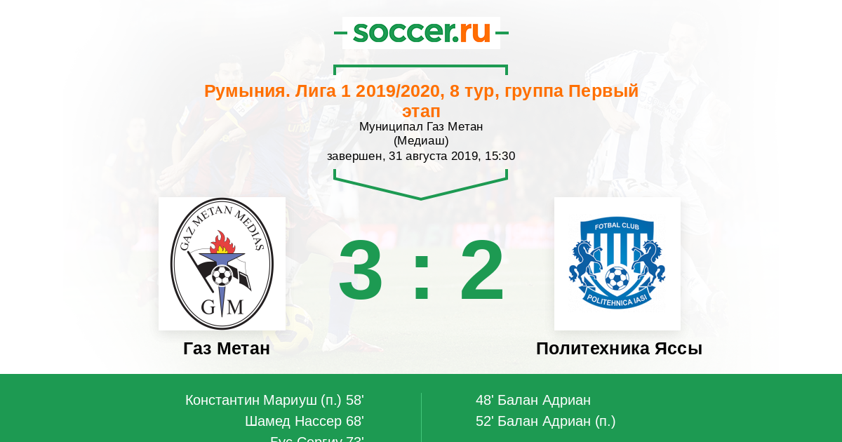 73' (3:2) Бус Сергиу (9) (Кардосо Николао (27))