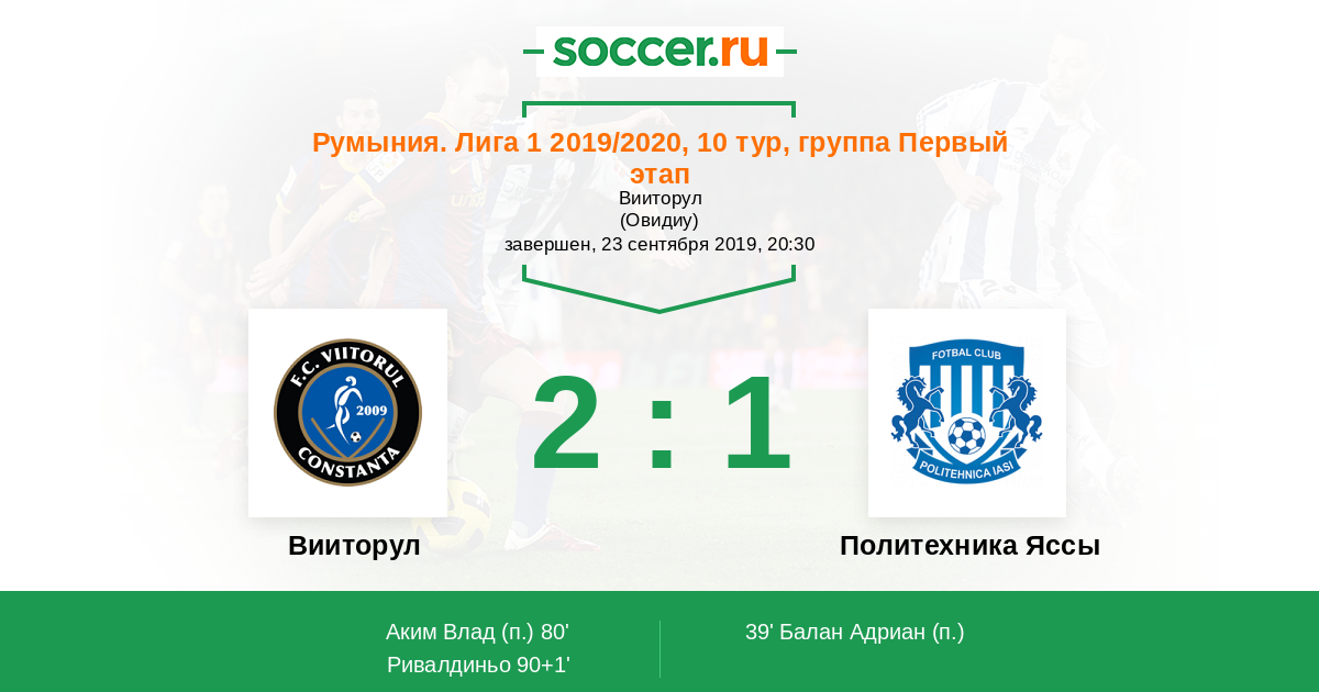 39' (0:1) Балан Адриан (9)
