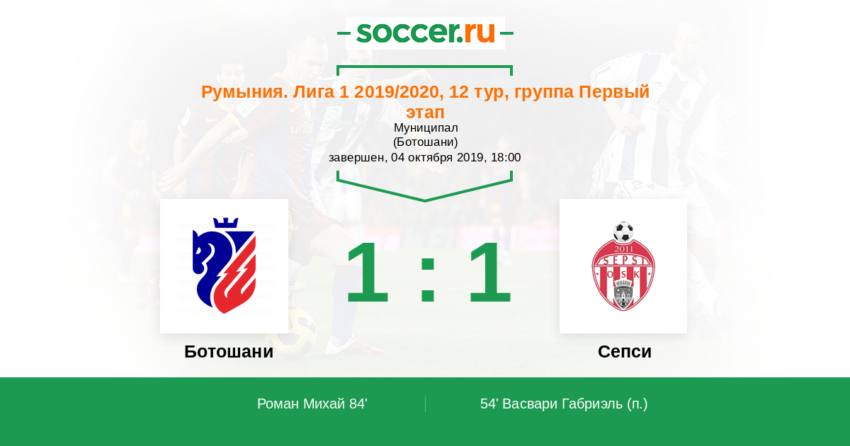 84' (1:1) Роман Михай (11)