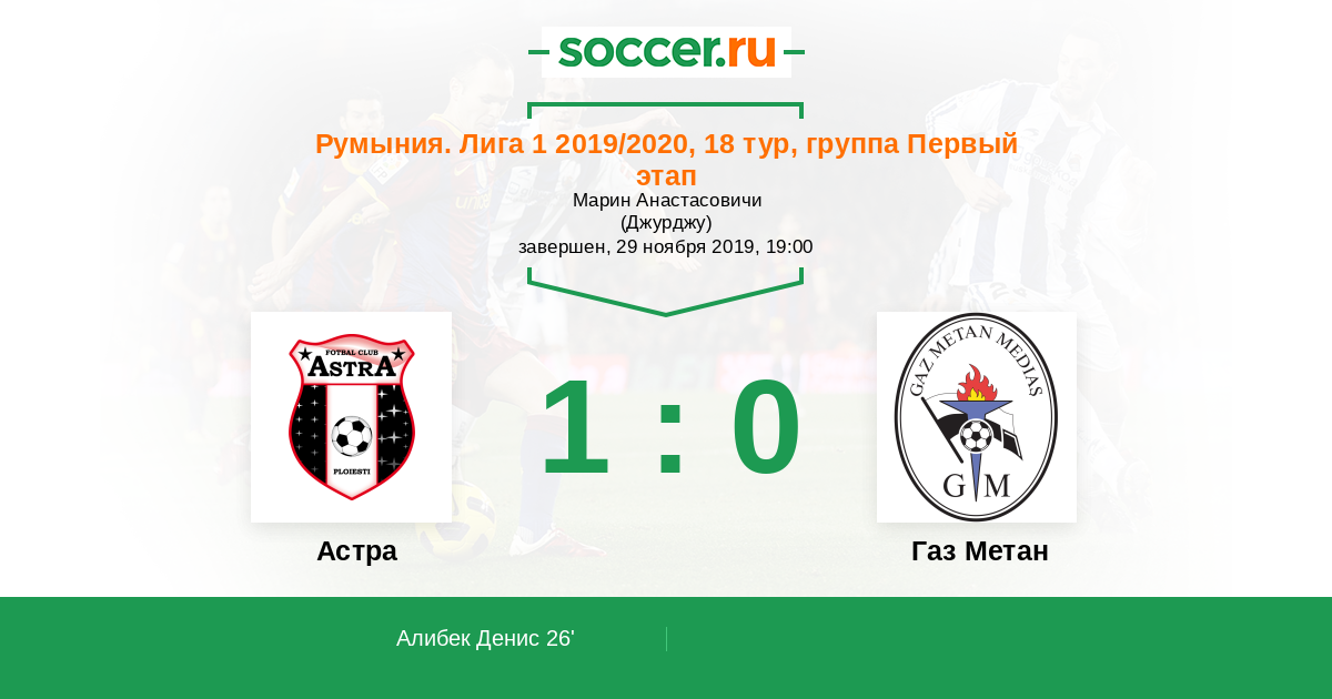 26' (1:0) Алибек Денис (7) (Будеску Константин (50))