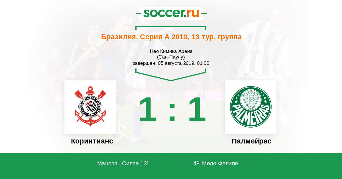 13' (1:0) Маноэль Силва (4) (Сорноза Жуниор (7))
