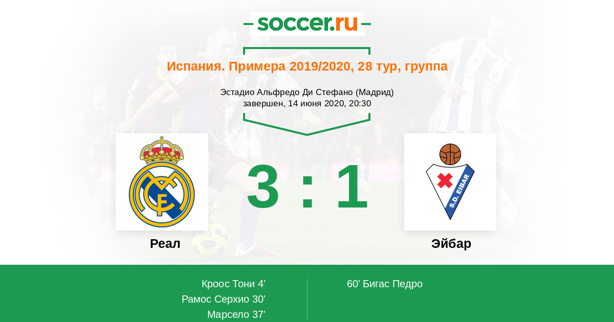 Запасные: 26 Альтубе Диего, 1 Ареоля Альфонс, 23 Менди Ферлан (с 46'), 3 Милитао Эдер (с 61'), 39 Хави, 15 Вальверде Федерико (с 84'), 22 Иско, 16 Родригес Хамес, 25 Винисиус Жуниор (с 61'), 20 Асенсио Марко, 11 Бэйл Гарет (с 61'), 21 Диас Браим
