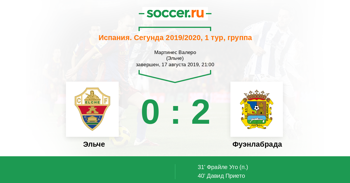 40' (0:2) Давид Прието (4) (Хосе Фран (23))