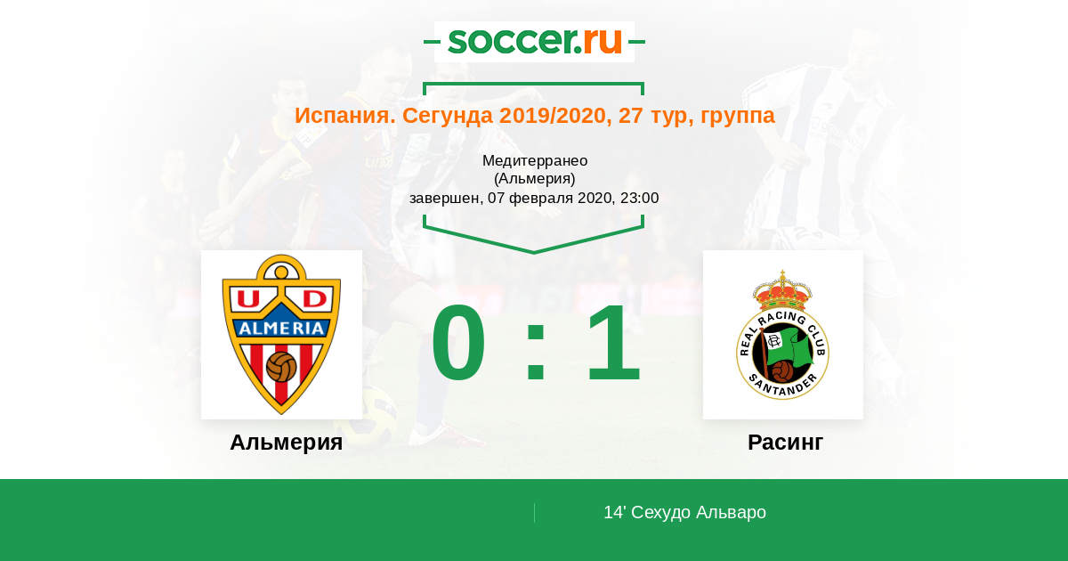 14' (0:1) Сехудо Альваро (10) (Гарсия Нандо (5))