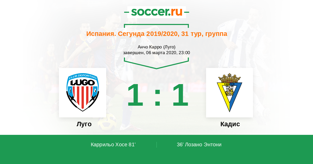 81' (1:1) Каррильо Хосе (10) (Джало Марселу (4))